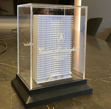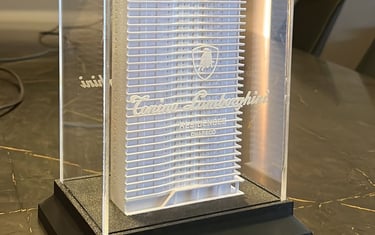 Cada peça recebe um tratamento artesanal refinado, com pintura automotiva e polimento. O resultado é um ativo tangível de alto impacto, entregue com segurança e pronto para impressionar seus clientes.