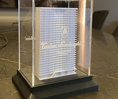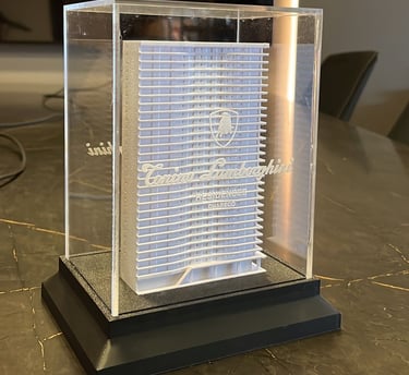 Desenvolvemos peças de alto impacto para eventos corporativos e premiações que exigem exclusividade. Unimos design autoral à manufatura aditiva de alta resolução, entregando um acabamento refinado que simboliza o sucesso e a autoridade da sua marca.